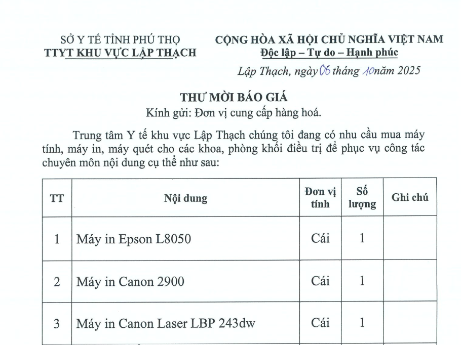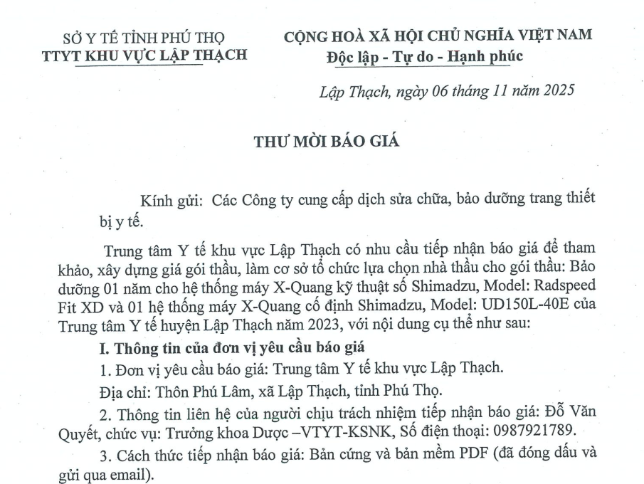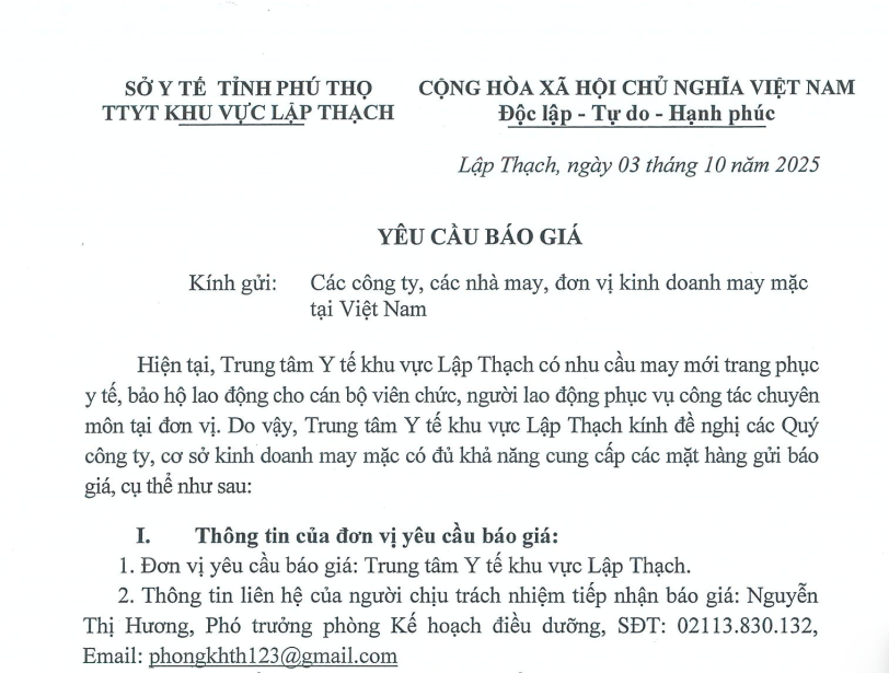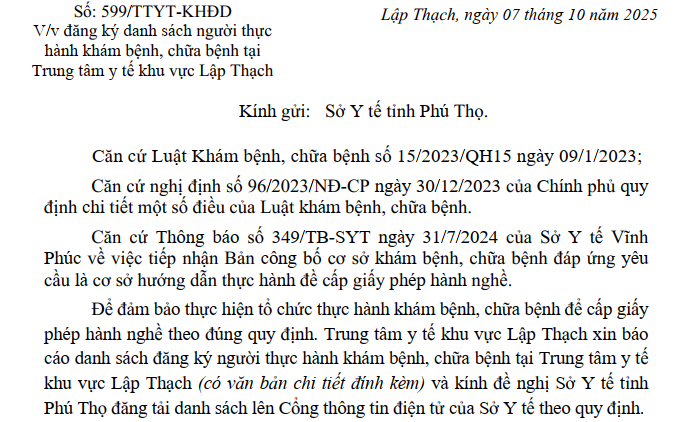 Trung tâm y tế huyện Lập Thạch có 22 khoa, phòng (trong đó có 16 khoa lâm sàng, cận lâm sàng; 04...